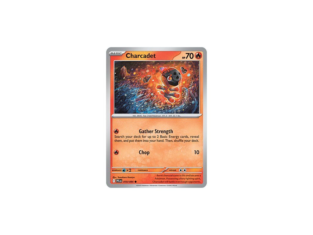 Kusová Pokémon karta Charcadet 019/094 REVERSE HOLO pochází z edice Mega Evolution—Phantasmal Flames. Jedná se o originální kartu v anglickém jazyce, vhodnou především pro sběratele, případně pro hraní Pokémon TCG.