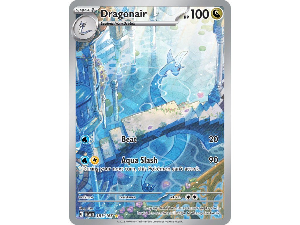 Kusová Pokémon karta Dragonair 181/165 pochází z edice Scarlet & Violet—Pokémon 151. Jedná se o originální kartu v anglickém jazyce, vhodnou především pro sběratele, případně pro hraní Pokémon TCG.