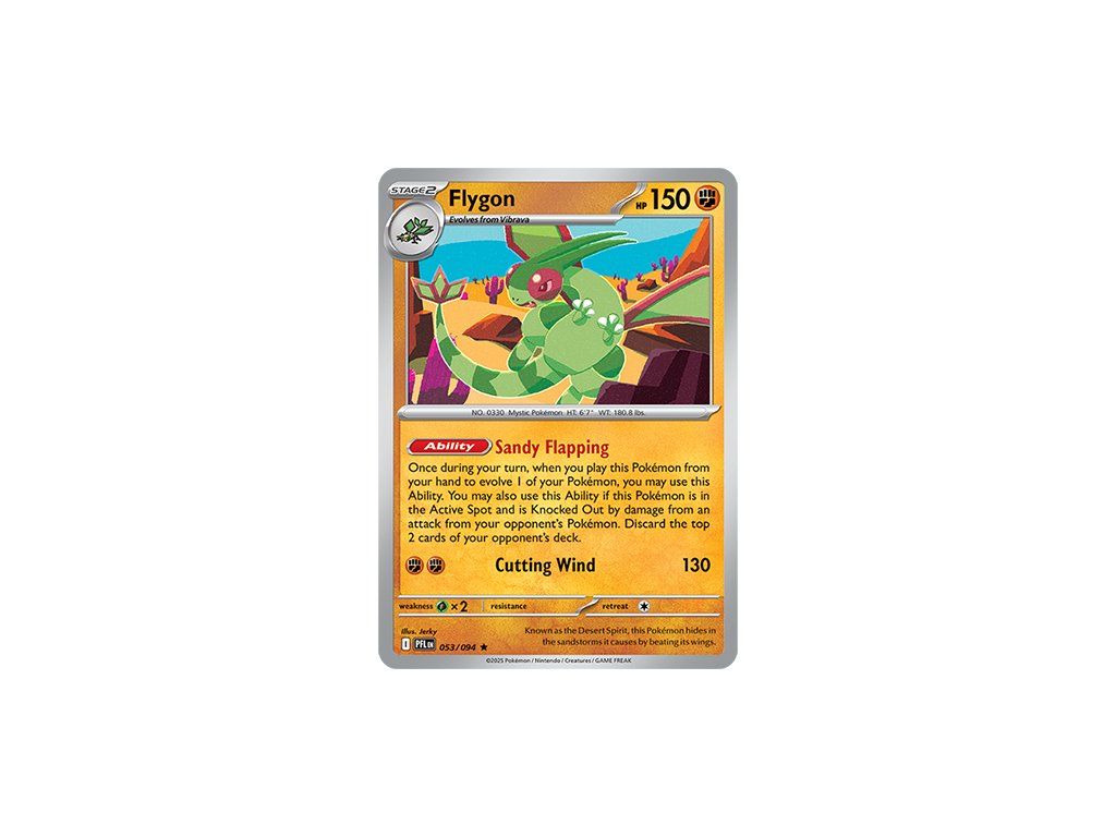 Kusová Pokémon karta Flygon 053/094 REVERSE HOLO pochází z edice Mega Evolution—Phantasmal Flames. Jedná se o originální kartu v anglickém jazyce, vhodnou především pro sběratele, případně pro hraní Pokémon TCG.