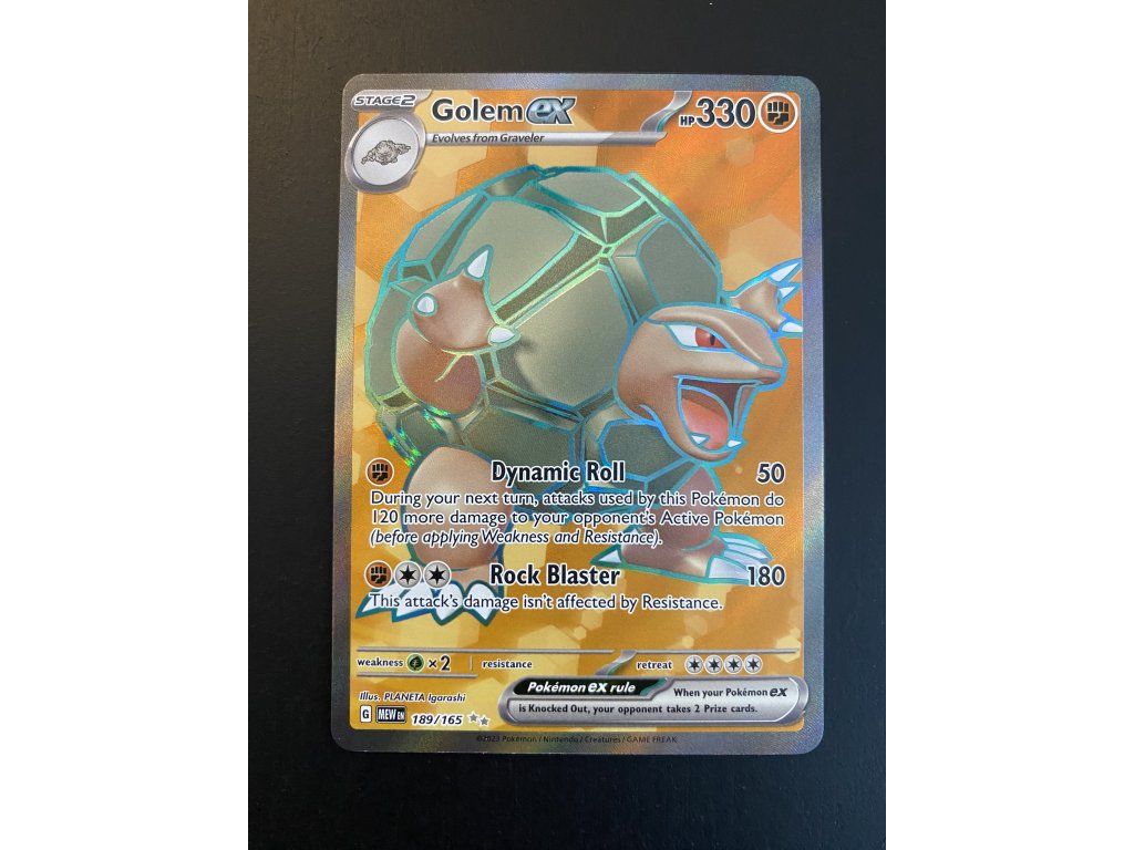 Kusová Pokémon karta Golem EX 189/165 pochází z edice Scarlet & Violet—Pokémon 151. Jedná se o originální kartu v anglickém jazyce, vhodnou především pro sběratele, případně pro hraní Pokémon TCG.