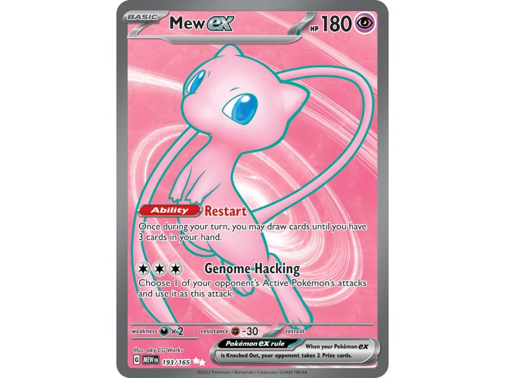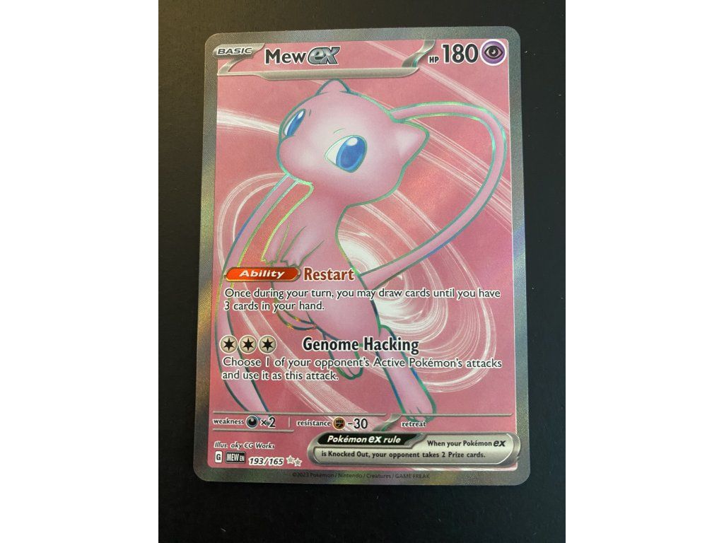 Kusová Pokémon karta Mew EX 193/165 pochází z edice Scarlet & Violet—Pokémon 151. Jedná se o originální kartu v anglickém jazyce, vhodnou především pro sběratele, případně pro hraní Pokémon TCG.