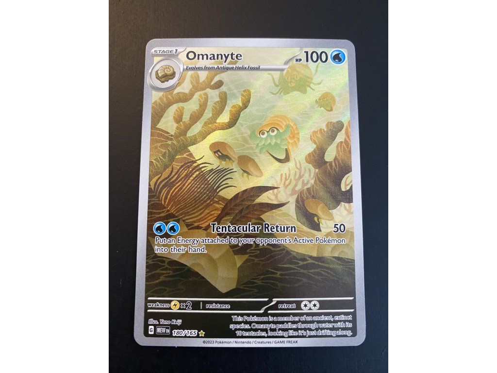 Kusová Pokémon karta Omanite 180/165 pochází z edice Scarlet & Violet—Pokémon 151. Jedná se o originální kartu v anglickém jazyce, vhodnou především pro sběratele, případně pro hraní Pokémon TCG.