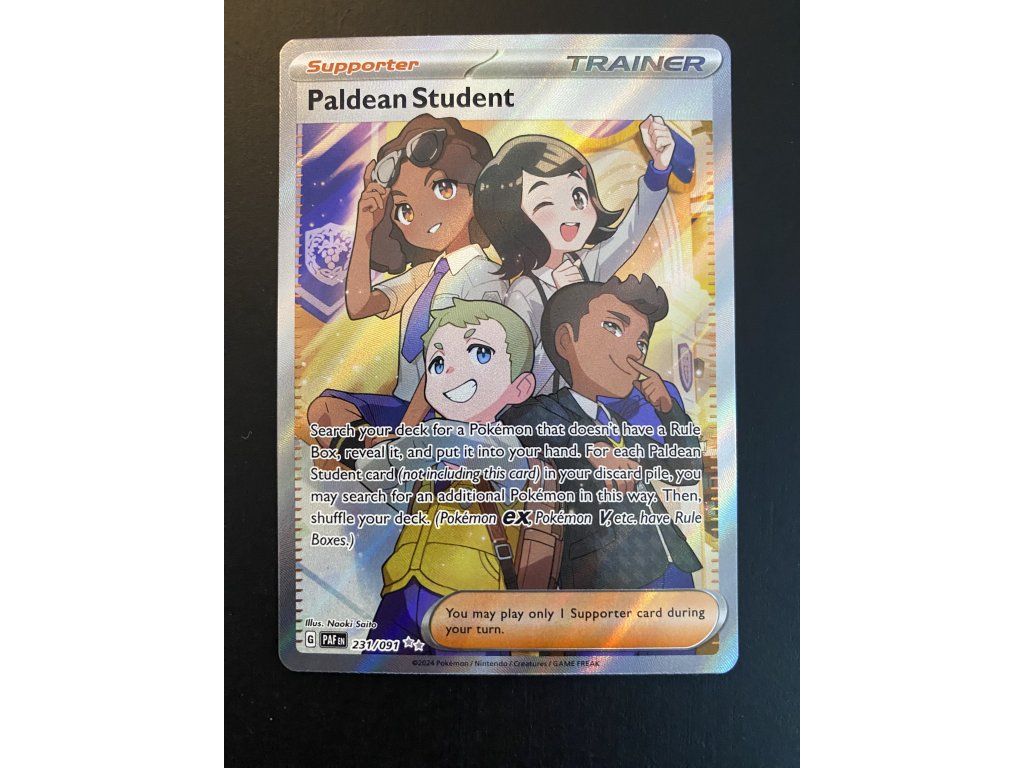 Kusová Pokémon karta Paldean Student 231/091 pochází z edice Scarlet & Violet—Paldean Fates. Jedná se o originální kartu v anglickém jazyce, vhodnou především pro sběratele, případně pro hraní Pokémon TCG.