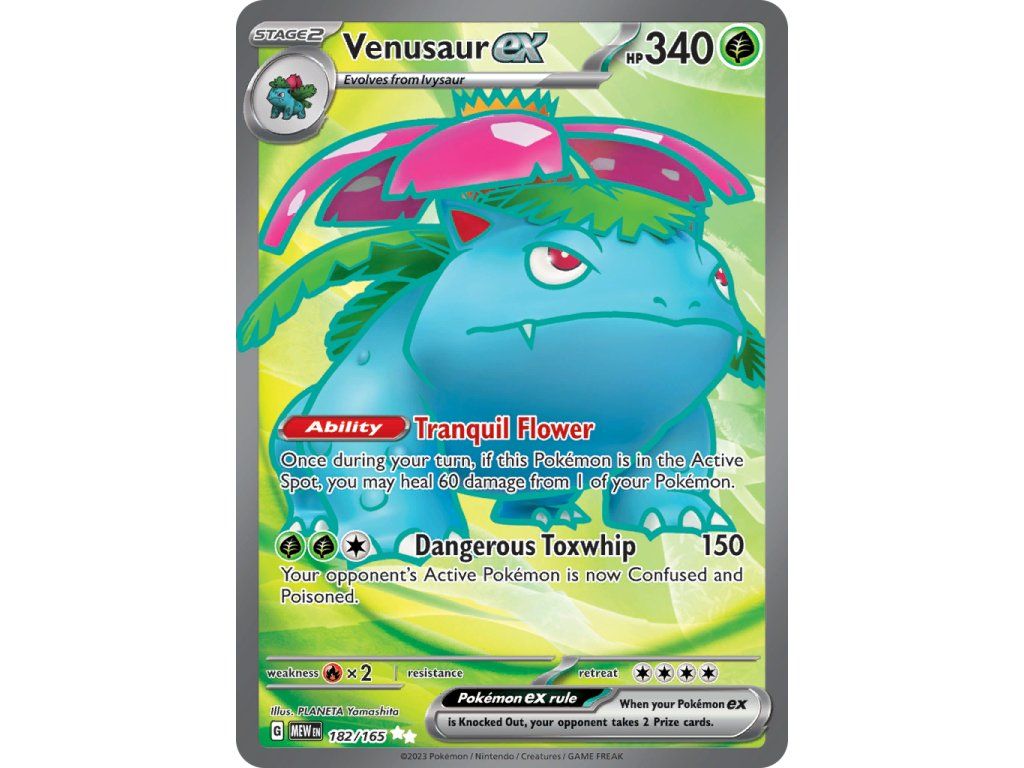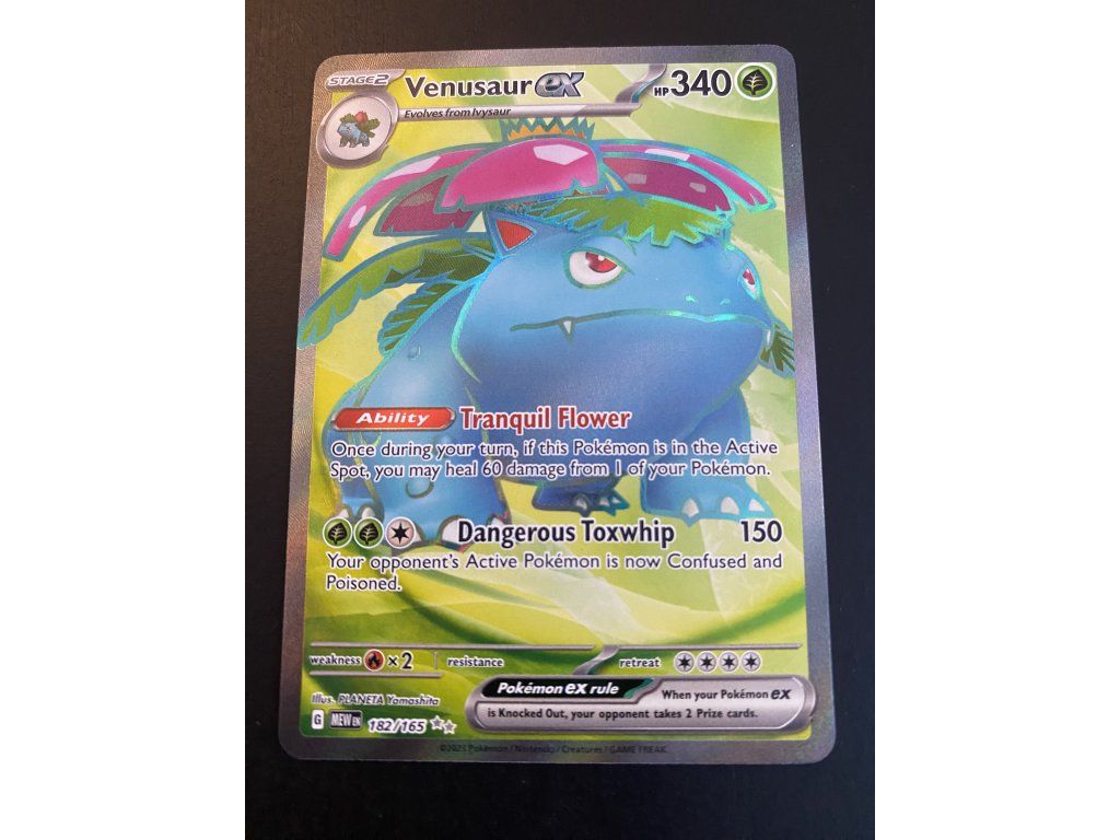 Kusová Pokémon karta Venusaur EX 182/165 pochází z edice Scarlet & Violet—Pokémon 151. Jedná se o originální kartu v anglickém jazyce, vhodnou především pro sběratele, případně pro hraní Pokémon TCG.