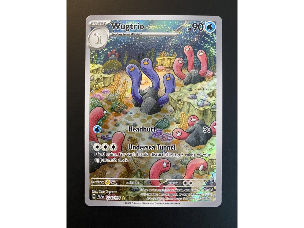 Kusová Pokémon karta Wugtrio 224/091 pochází z edice Scarlet & Violet—Paldean Fates. Jedná se o originální kartu v anglickém jazyce, vhodnou především pro sběratele, případně pro hraní Pokémon TCG.